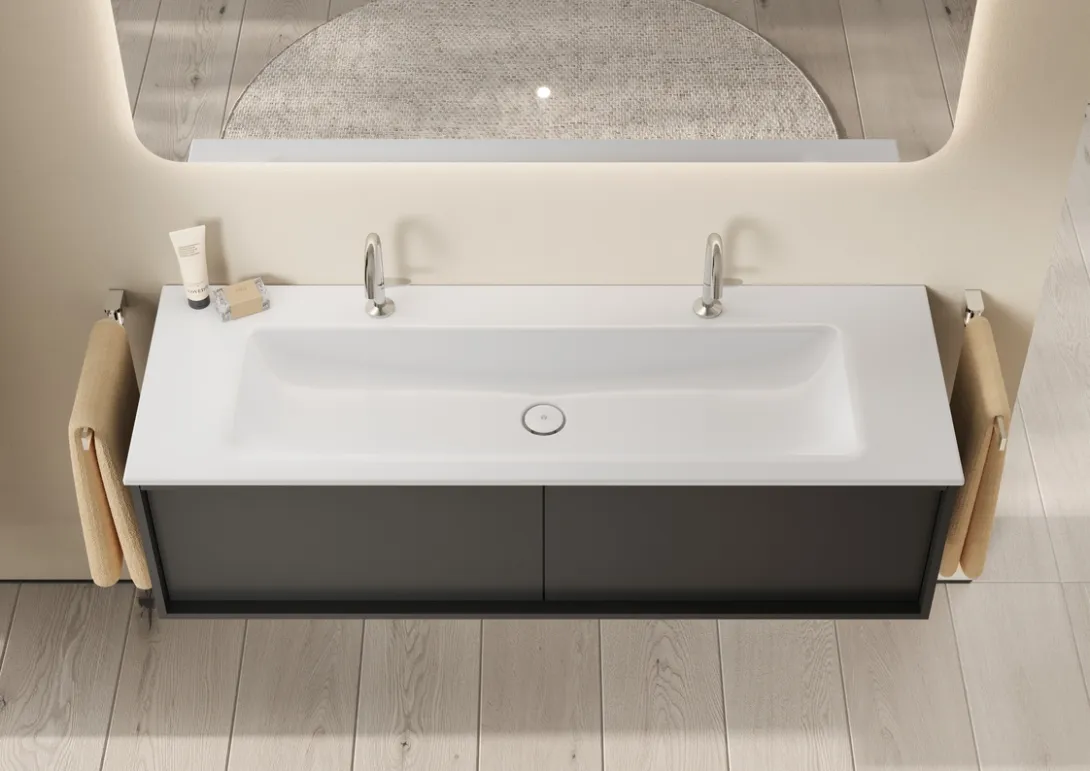 Händewaschen, Zahnhygiene und Make-up, aber auch Ablage­fläche und Aufbewahrungsort: Der Wasch­platz ist das Herz des Bade­zimmers. Deshalb gebührt ihm besondere Aufmerksam­keit, wenn es darum geht, Funktionalität und Optik mit dem Gesamt-Design des Bades in Ein­klang zu bringen.