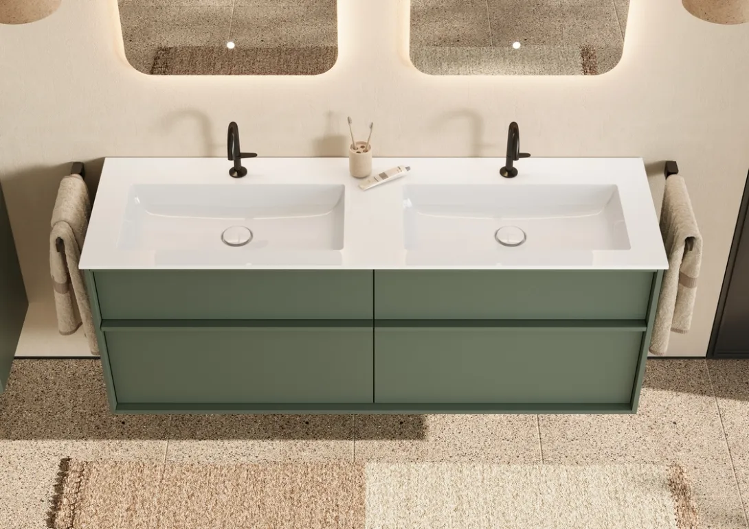 Waschtisch aus der Kollektion Uomo des Herstellers burgbad in der Farbe Rauchgrün matt.