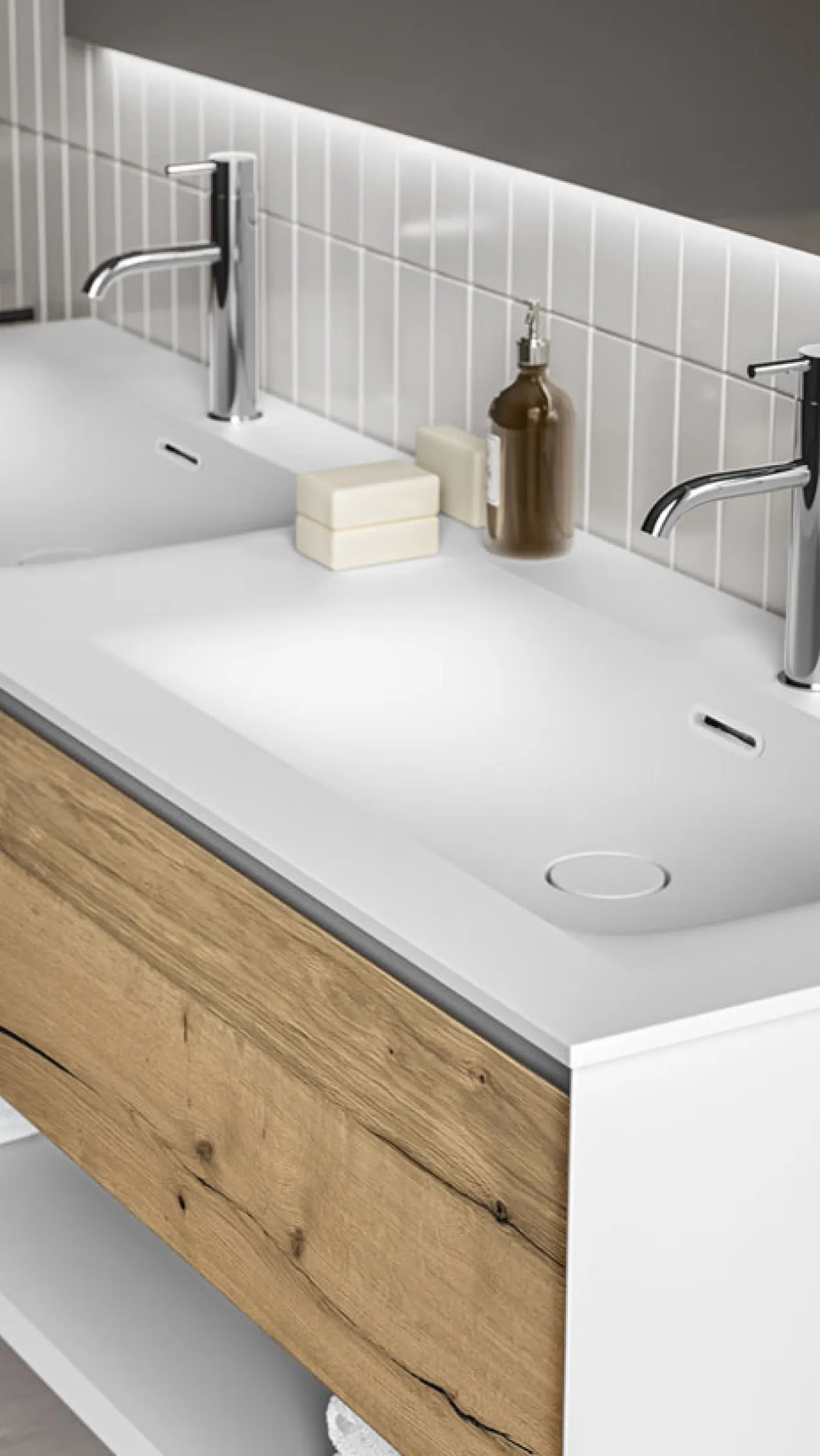• Waschtischplatten mit integrierten oder aufgesetzten Becken